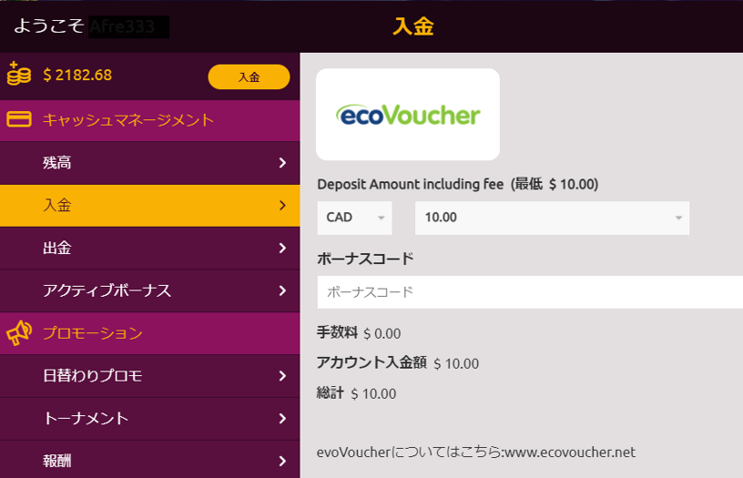 エコバウチャーから入金する方法